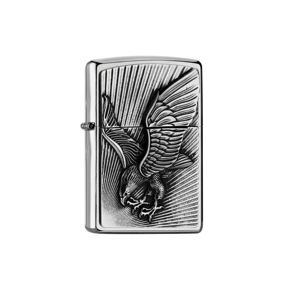 Kotkas läheneb! Pilkupüüdev Embleemi disain kroomitud harjatud tulemasinal. Tuleb pakendatud kinkekarpi. Optimaalse jõudluse tagamiseks täitke Zippo välgumihkli kütusega.